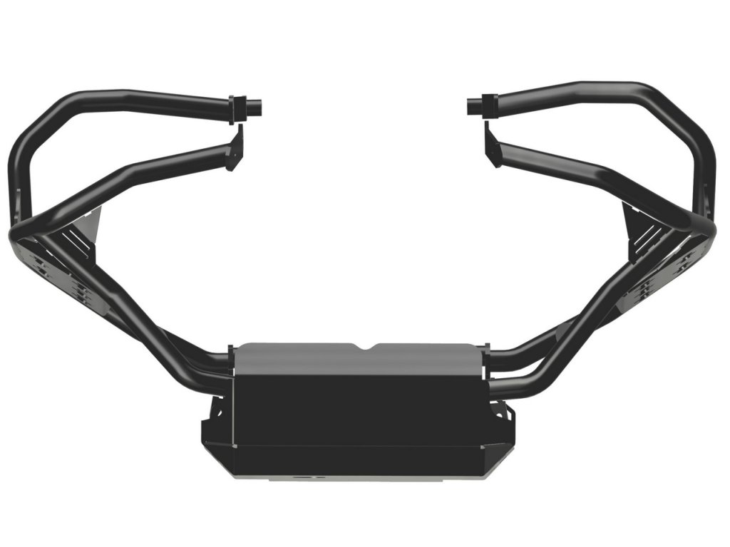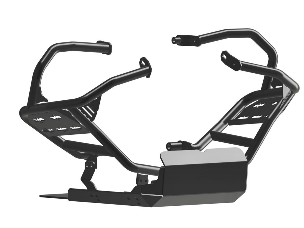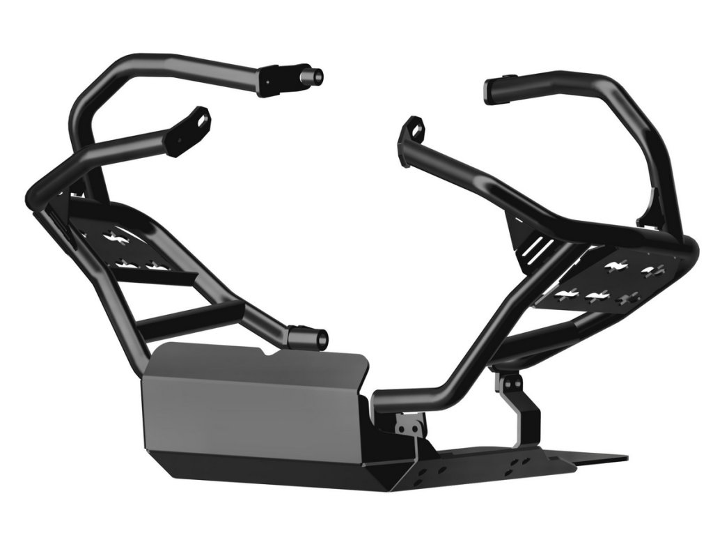 - Solidne punkty mocowania – żadnych kompromisów! Elementy wycinane laserowo dla idealnego dopasowania, wykonane z 5-milimetrowej stali. Te części przejmują energię uderzeń przy wywrotkach zamiast ramy motocykla.