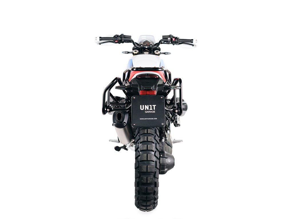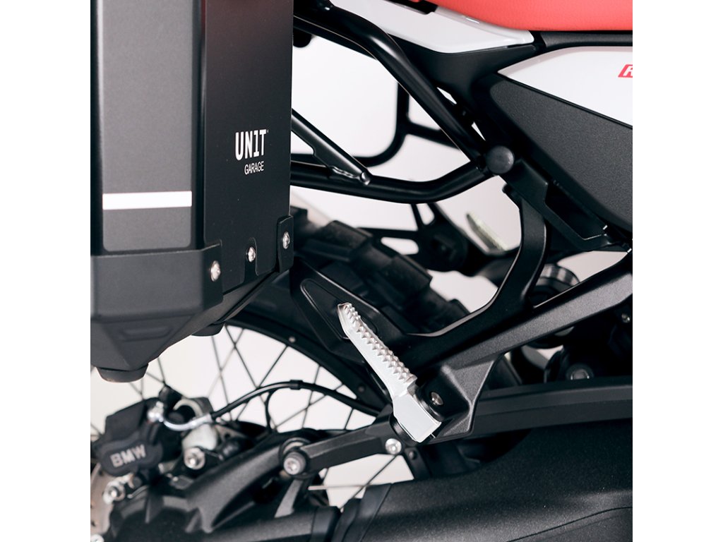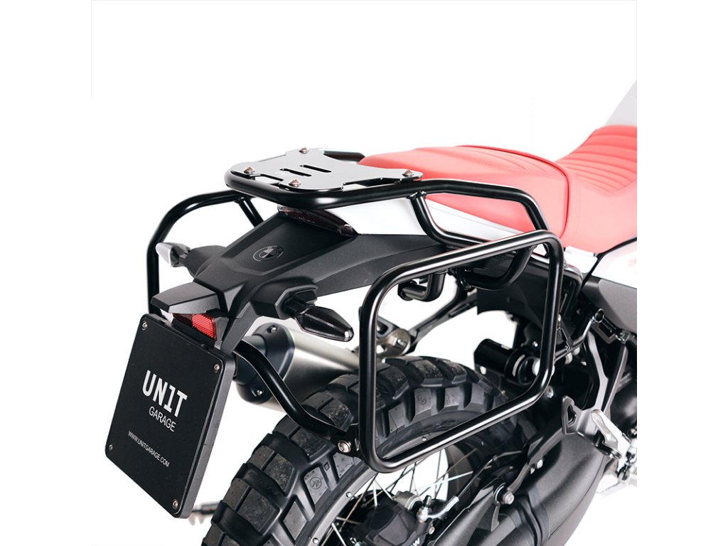 Ten kompletny zestaw stelaży ze stali nierdzewnej idealnie integruje się z resztą motocykla. Dostarczany jest w komplecie z zestawem montażowym i śrubami, nie są wymagane żadne modyfikacje motocykla. Może być zamontowany na motocyklu w połączeniu z bagażnikami UNIT garage lub tylnym uchwytem UNIT garage. Mogą być wygodnie używane z pasażerem na pokładzie.