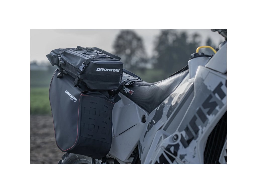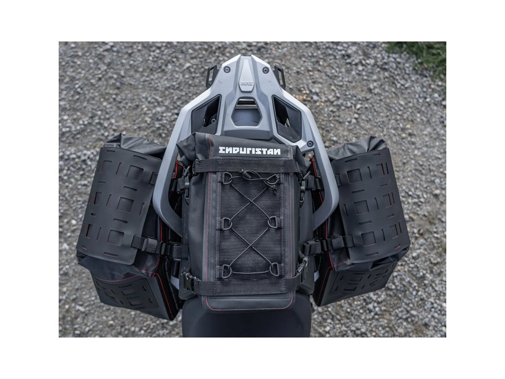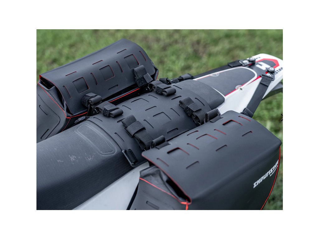 Możesz indywidualnie zwiększyć pojemność sakw, korzystając z siedmiu opatentowanych Attachment Pads – po trzy na każdej sakwie i jeden na siedzeniu. Interfejs na siedzeniu jest na tyle cienki, że nie przeszkadza podczas jazdy, nawet w terenie, gdy przesuwasz się do tyłu. Możesz również jechać z pasażerem, jeśli na siedzeniu nie są zamontowane dodatkowe sakwy.
