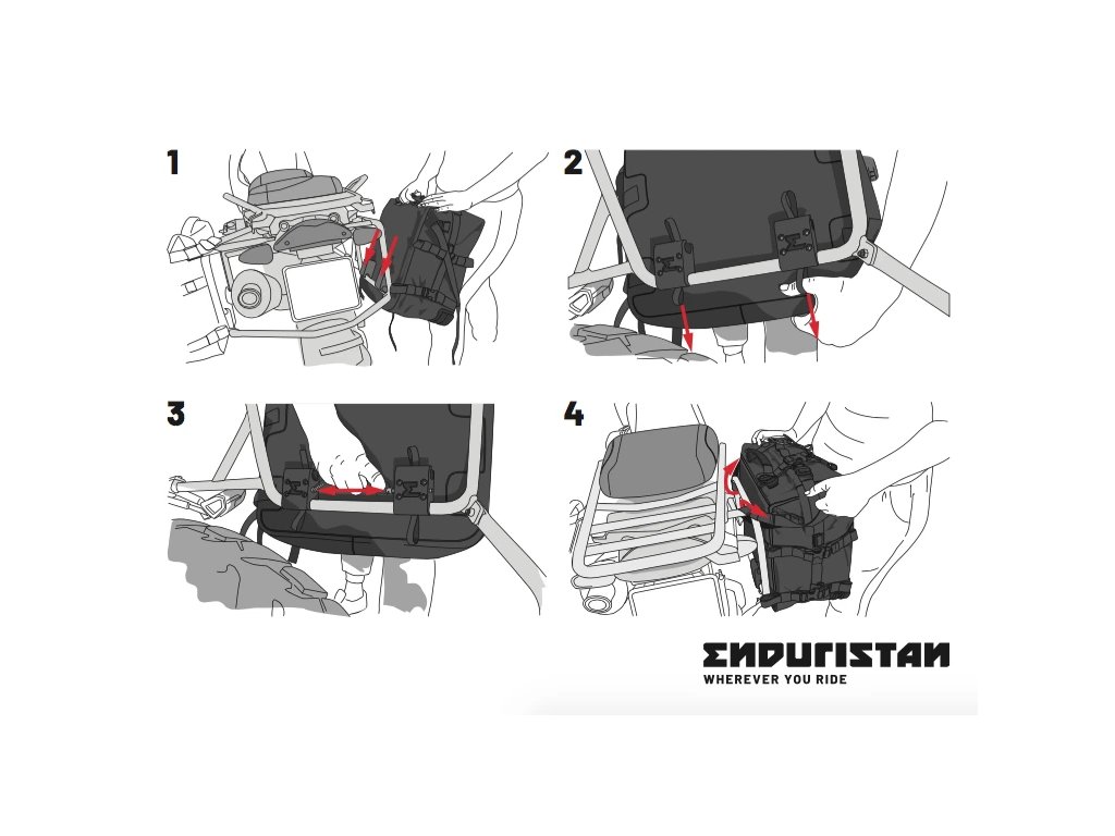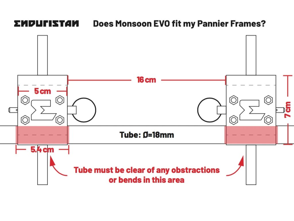 Monsoon Evo pasuje do prawie wszystkich ram sakw z rurami 18 mm. Dzięki nowo opracowanemu i innowacyjnemu uchwytowi montażowemu, torby można przymocować do ram sakw bez dodatkowej płyty montażowej. Jeśli zamontujesz również zamek, Monsoon Evo będą również zabezpieczone przed kradzieżą.