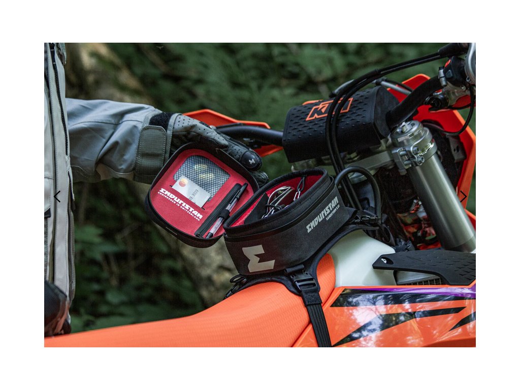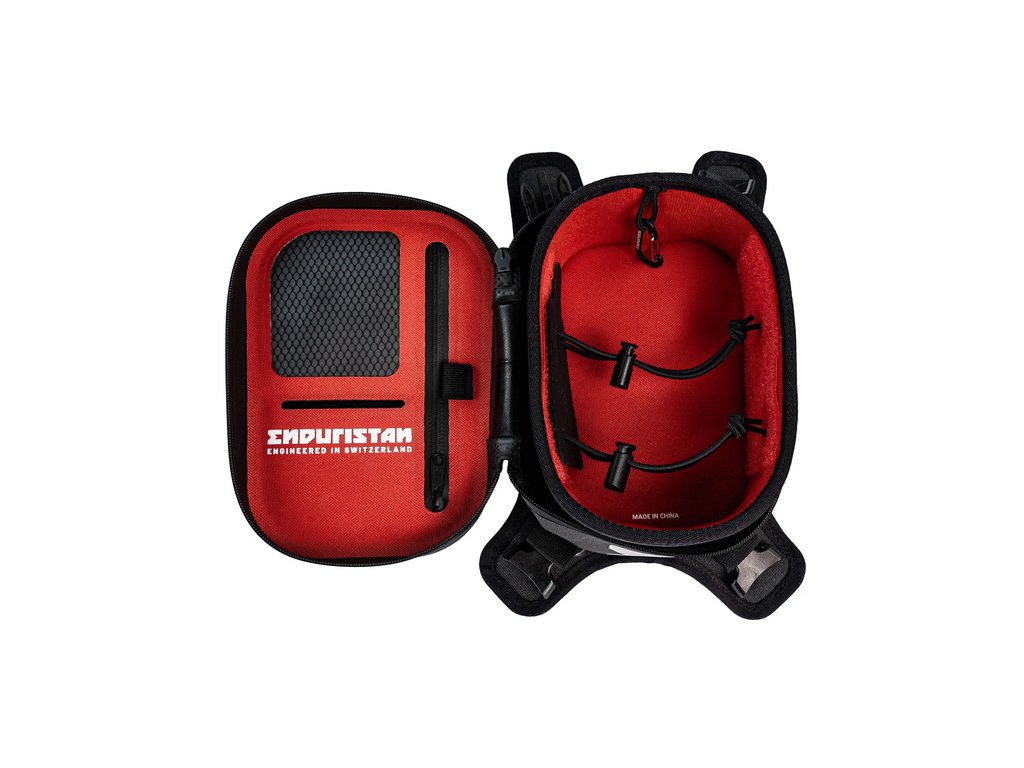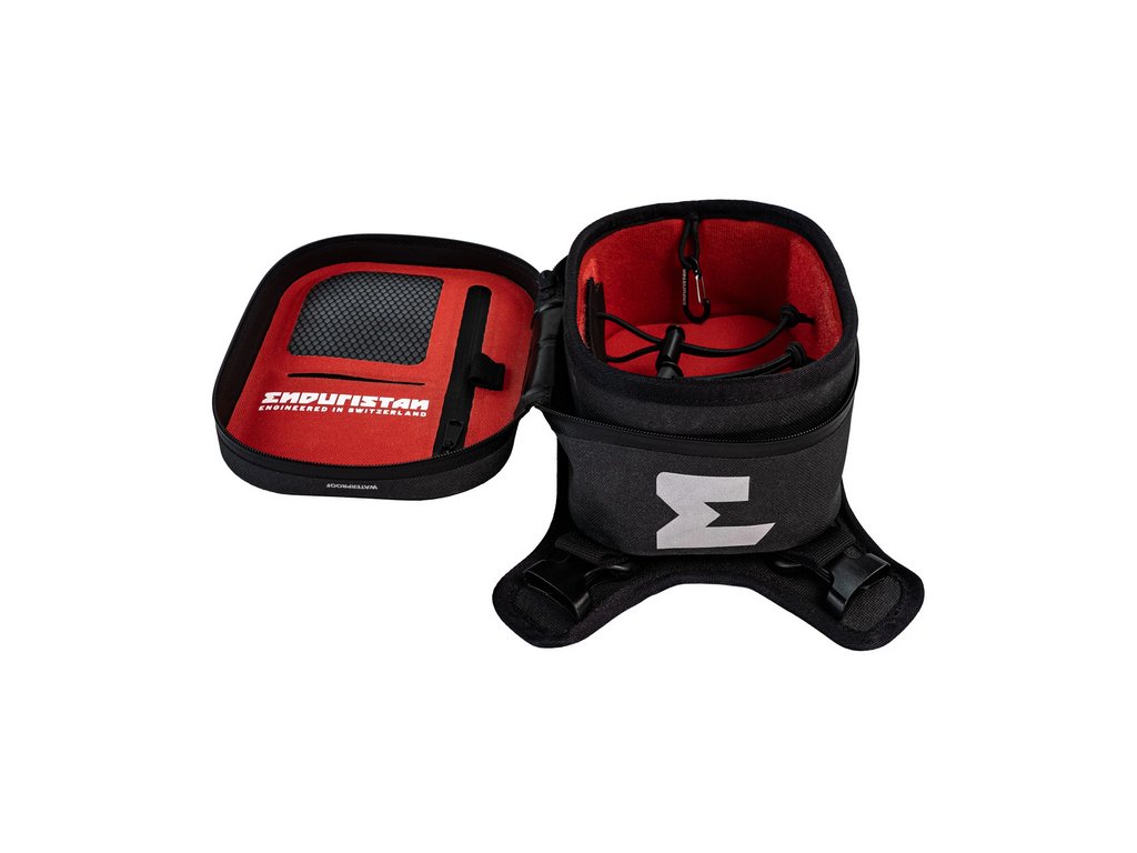 Wodoodporne, pyłoszczelne, odporne na błoto i śnieg – te cechy są standardowe dla toreb na zbiornik Enduristan. Pokrywa otwiera się na bok, umożliwiając obsługę jedną ręką i łatwiejszy dostęp do zawartości i organizera w pokrywie. Miękkie dno chroni motocykl przed zarysowaniami i jest zaprojektowane tak, aby dopasować się do kształtu zbiornika, zapewniając precyzyjne dopasowanie.