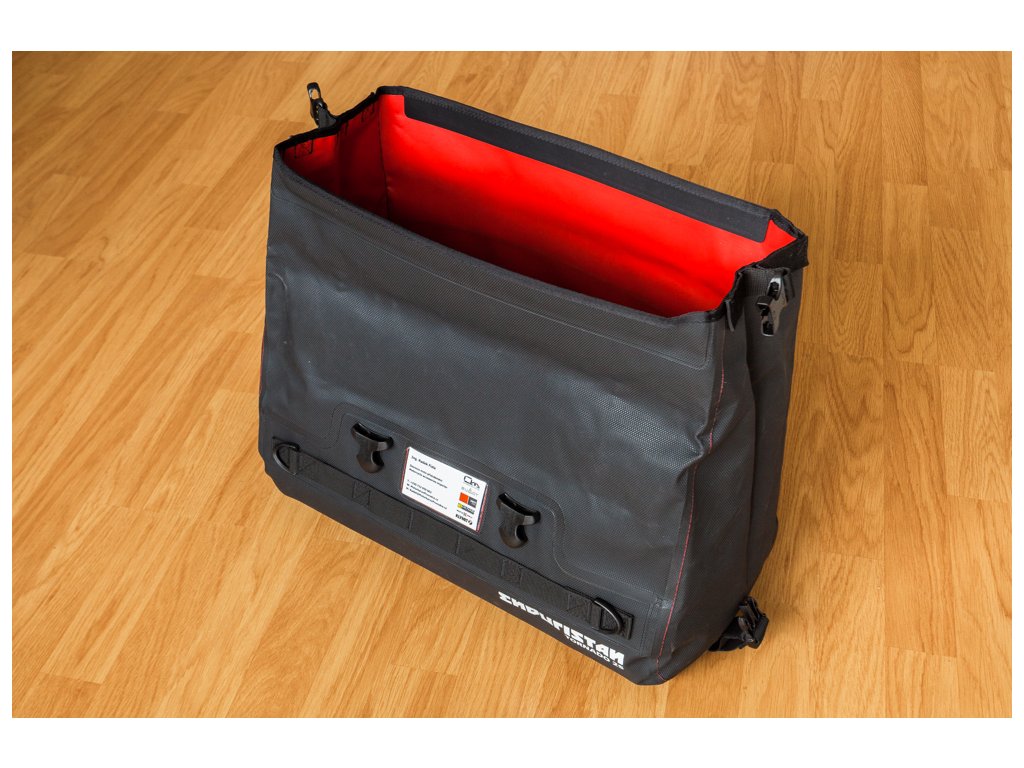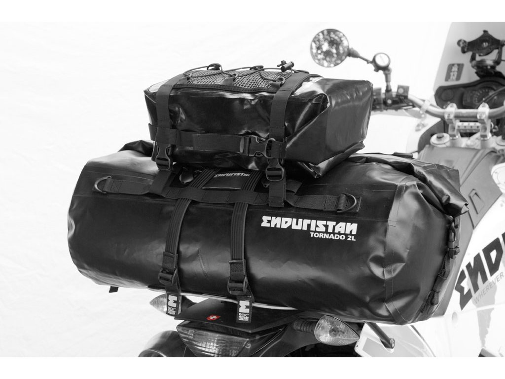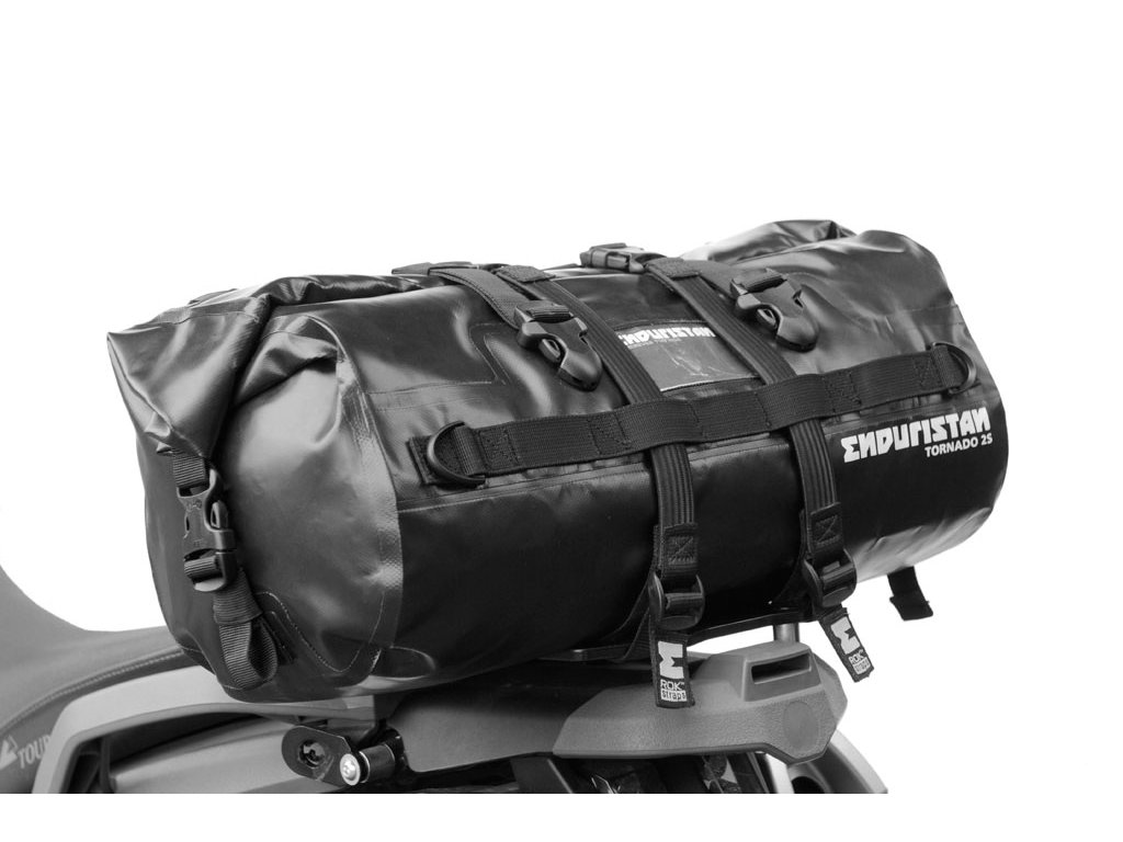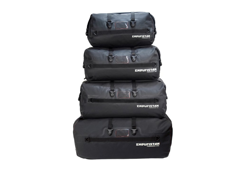 Dzięki naszej wodoodpornej 3-warstwowej tkaninie, rolowanemu zamknięciu i spawanej konstrukcji, Tornado 2 sakwy są w 100% odporne na wodę, błoto, śnieg i kurz.