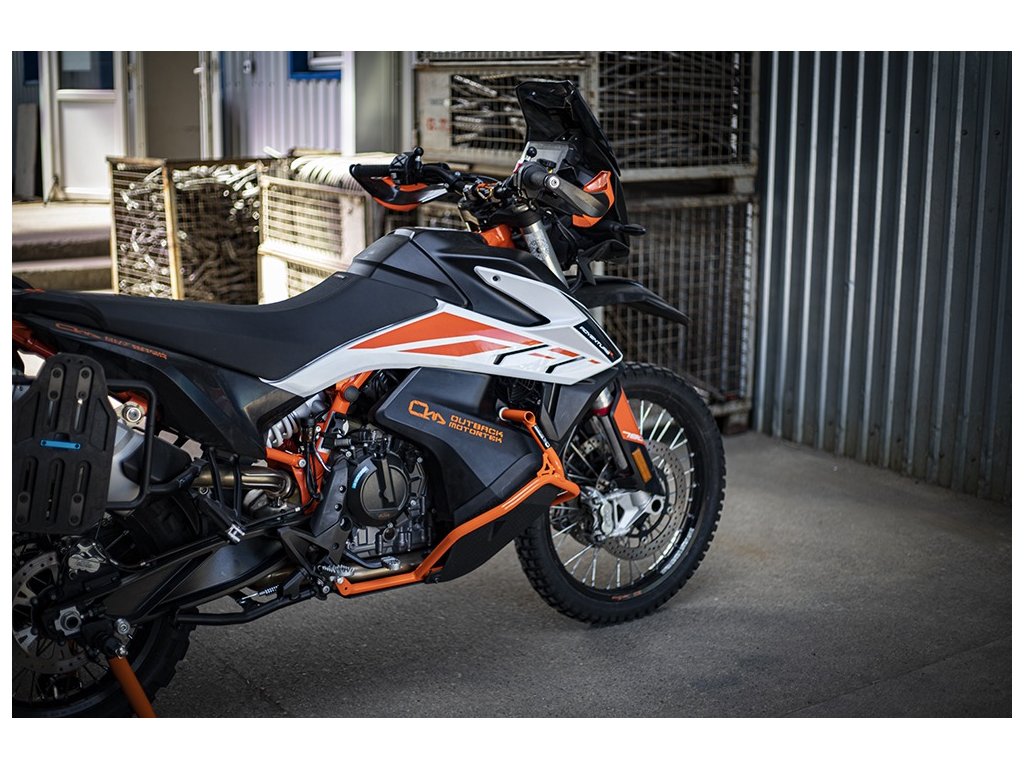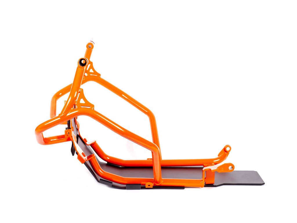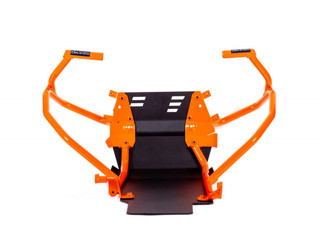Średnica stalowej rury wynosi 22 mm. Kolor pomarańczowy jest taki sam jak kolor KTM. Produkt jest instalowany tylko na ramie motocykla. Do silnika nie jest przymocowane żadne mocowanie. Zaprojektowany dla maksymalnej ochrony zbiorników i najważniejszych części motocykla. Konstrukcja umożliwia łatwą obsługę - wymiana filtra i oleju.