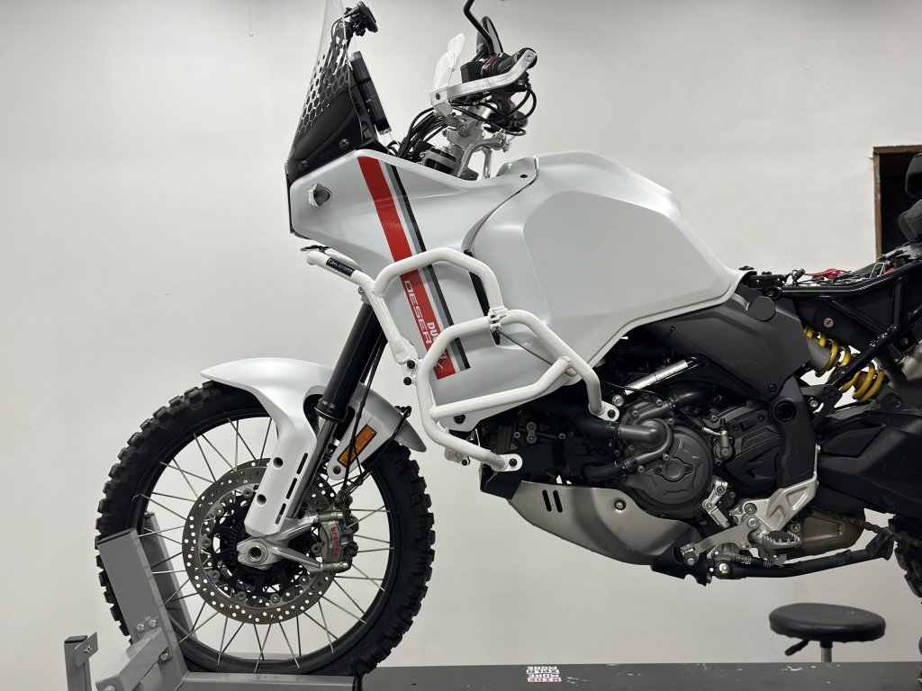 W pełni montowane do ramy. Nasze gmole Ducati DesertX opierają się na ramie, a nie na silniku, dzięki specjalnemu wspornikowi stworzonemu dla tego efektu.