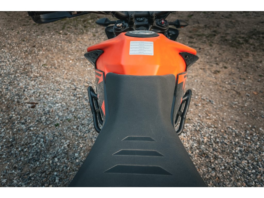 Mniej często znaczy więcej. Nie próbowaliśmy pokrywać całego motocykla gmolami, które wyglądają jak pajęczyna. Modele KTM 390 Adventure mają tylko kilka mocnych punktów montażowych, dlatego bardziej sensowne jest stworzenie jednego solidnego i kompaktowego zestawu gmoli, które trzymają się blisko tych kilku punktów montażowych, zamiast być daleko rozłożone, co skutkuje zbyt elastyczną i "miękką" konstrukcją.