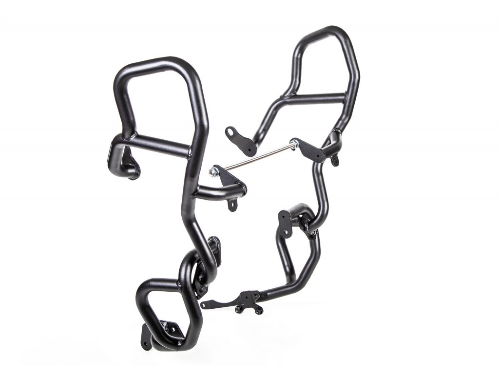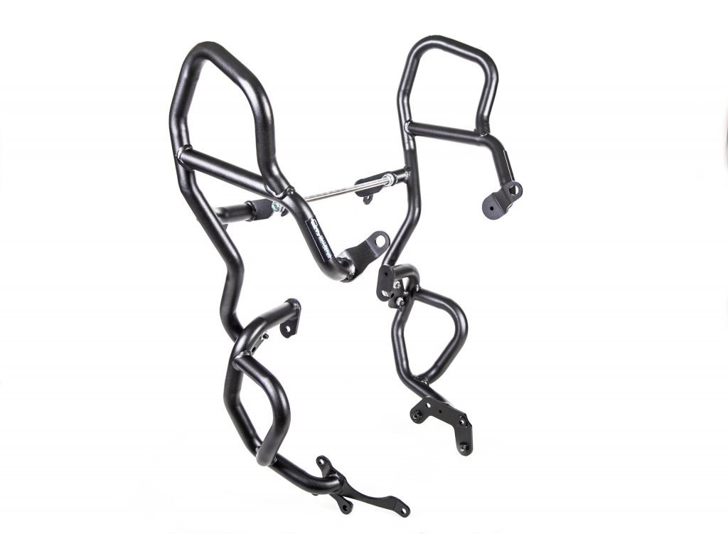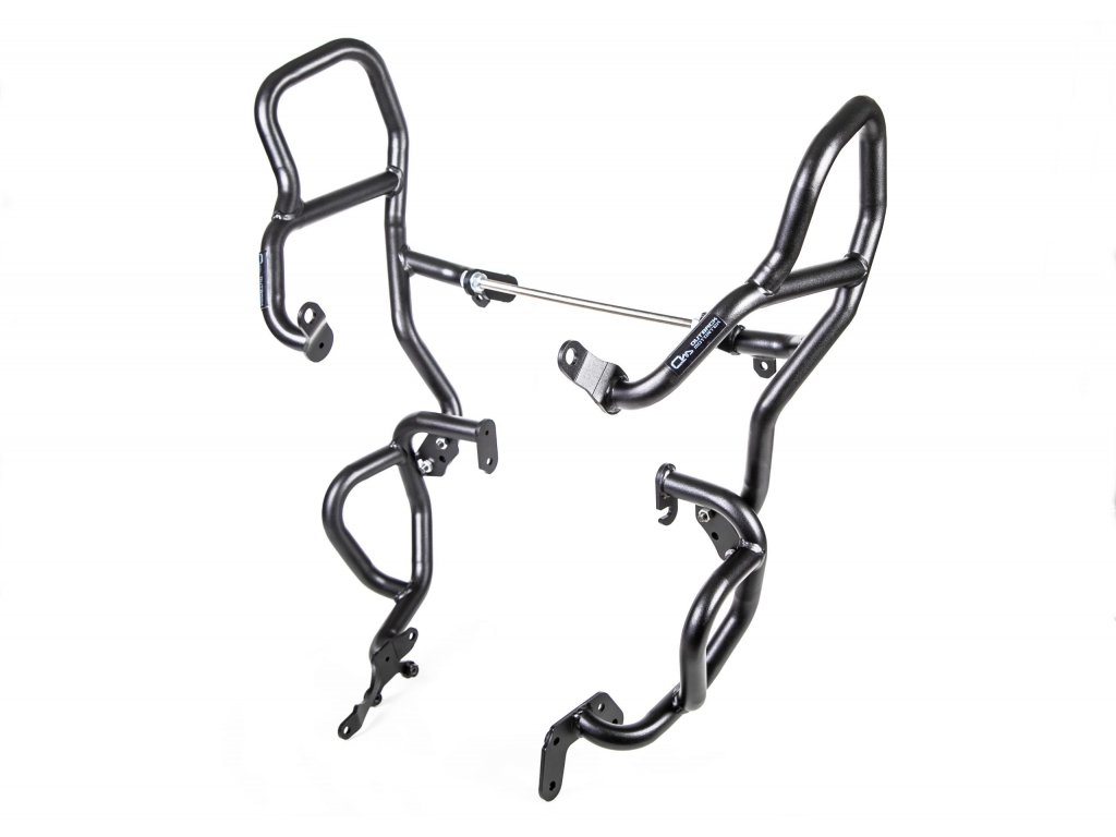 Konstrukcja naszych gmoli opiera się na filozofii, że mniej często znaczy więcej, dlatego stworzyliśmy kompaktowy, solidny zestaw gmoli, które nie sięgają daleko od punktów mocowania. System ten doskonale uzupełnia sportowe, agresywne linie motocykla Triumph Tiger 1200.