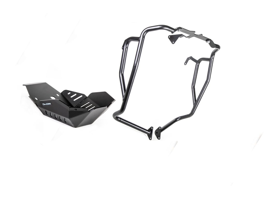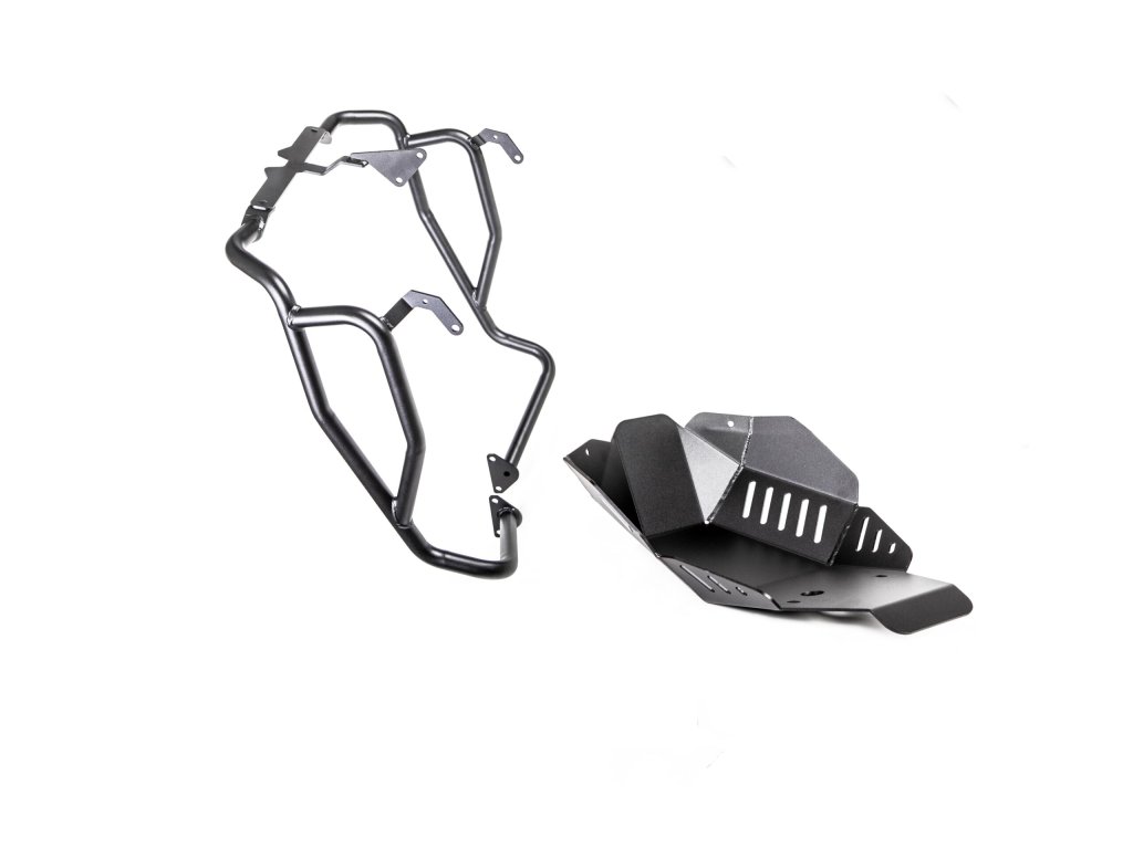 Zestaw bardzo wytrzymałych gomli i osłony silnika zapewniających doskonałą ochronę Kawasaki KLR650 podczas jazdy w terenie.