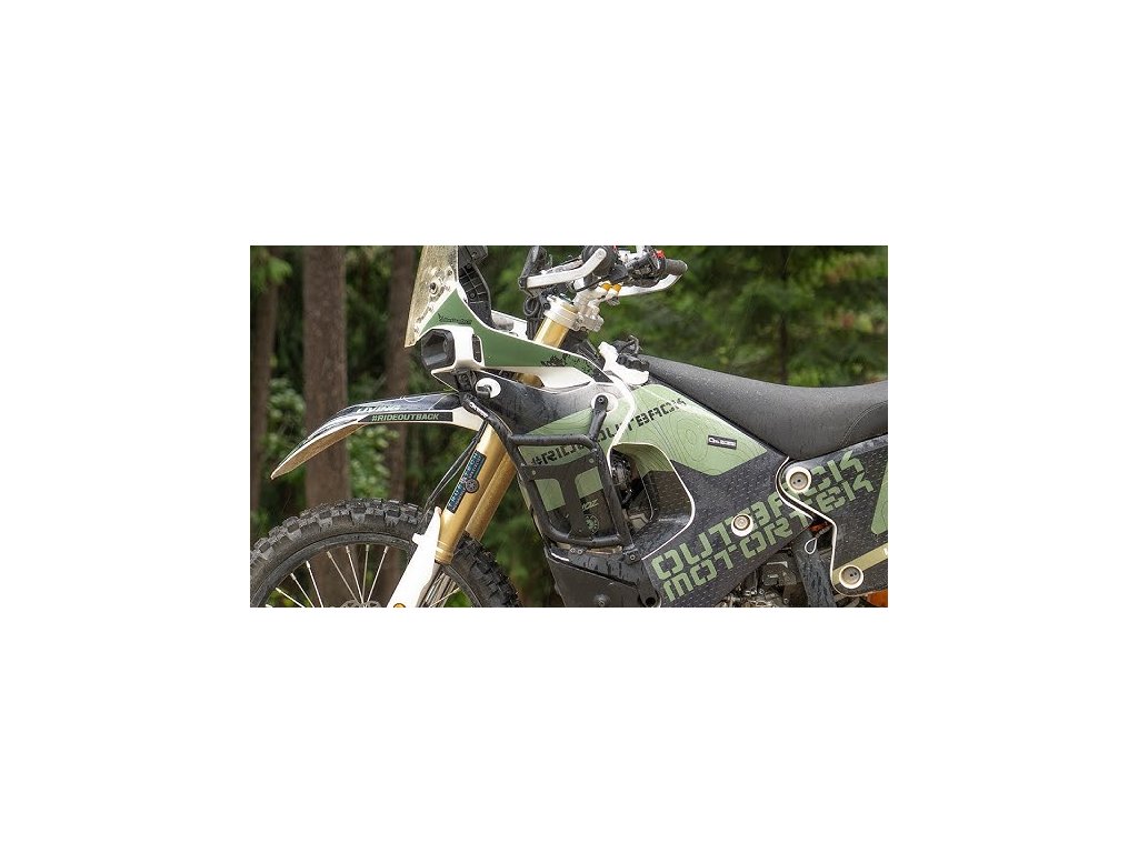 W Outback Motortek podchodzimy do ochrony bardzo poważnie. Dlatego zdecydowaliśmy się nazwać ten zestaw „Auxiliary Platform” (platforma pomocnicza), zamiast używać powszechniejszej nazwy „crash bary”. Ze względu na konstrukcję motocykla trudno jest stworzyć prawdziwą ochronę przed upadkami, która sprawdziłaby się w wymagających warunkach.