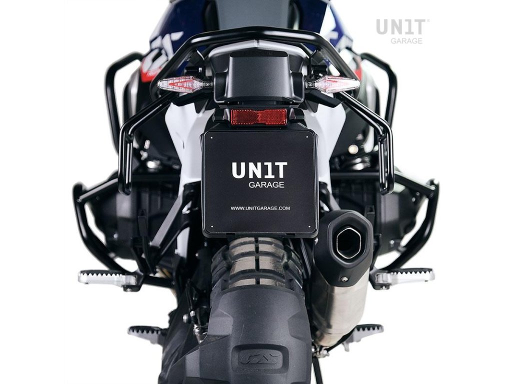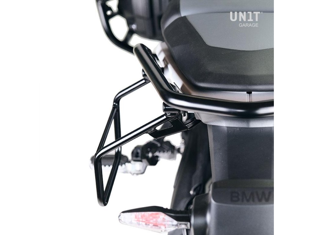 Mocowany jest po lewej stronie motocykla. Specjalnie zaprojektowany, aby idealnie komponować się z resztą motocykla. Gotowy do zamontowania systemu szybkiego zwalniania UNIT garage, piękny i minimalistyczny nawet wtedy, gdy torba nie jest zamocowana. W zestawie znajdują się śruby, a montaż na motocyklu w oryginalnej konfiguracji jest prosty, z ramą dla pasażera lub bez niej. Wszystkie akcesoria są ze sobą kompatybilne, chyba że określono inaczej. Może być wygodnie używany z pasażerem.