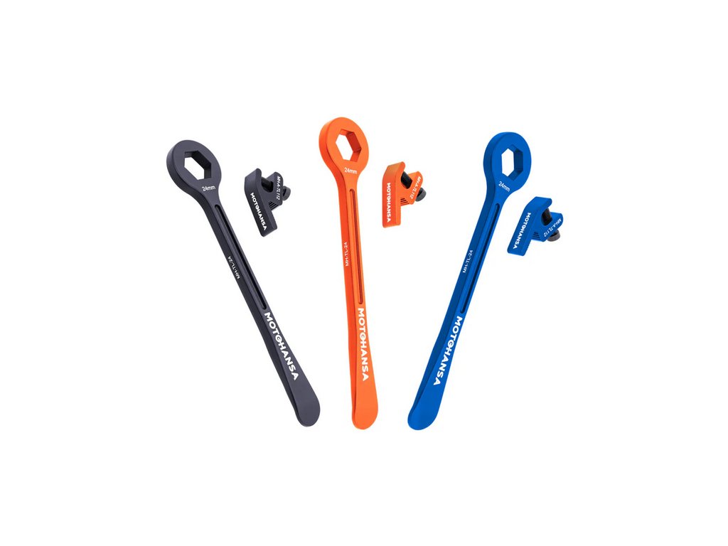 Końcówka z sześciokątnym łbem oczkowym 24 mm idealnie pasuje do nakrętek osi Motohansa SuperSockets.