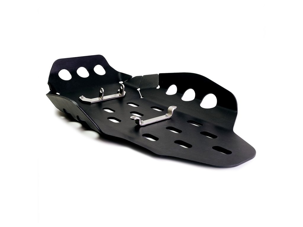 Solidna płyta ochronna silnika wykonana z anodowanego lekkiego stopu aluminium o grubości 5 mm.