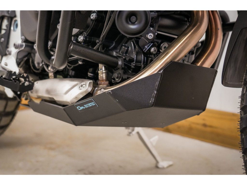 Osłona silnika jest odporna na uderzenia podczas jazdy w każdym ciężkim terenie. Dolne podłużne przetłoczenia pomagają silnikowi przemieszczać się gładko po twardych przeszkodach przy minimalnym oporze. Osłona zabezpiecza silnik, filtr oleju oraz wylot rury wydechowej przed odskakującymi kamieniami oraz błotem, dzięki czemu niezabłocony silnik jest przez cały czas optymalnie chłodzony.