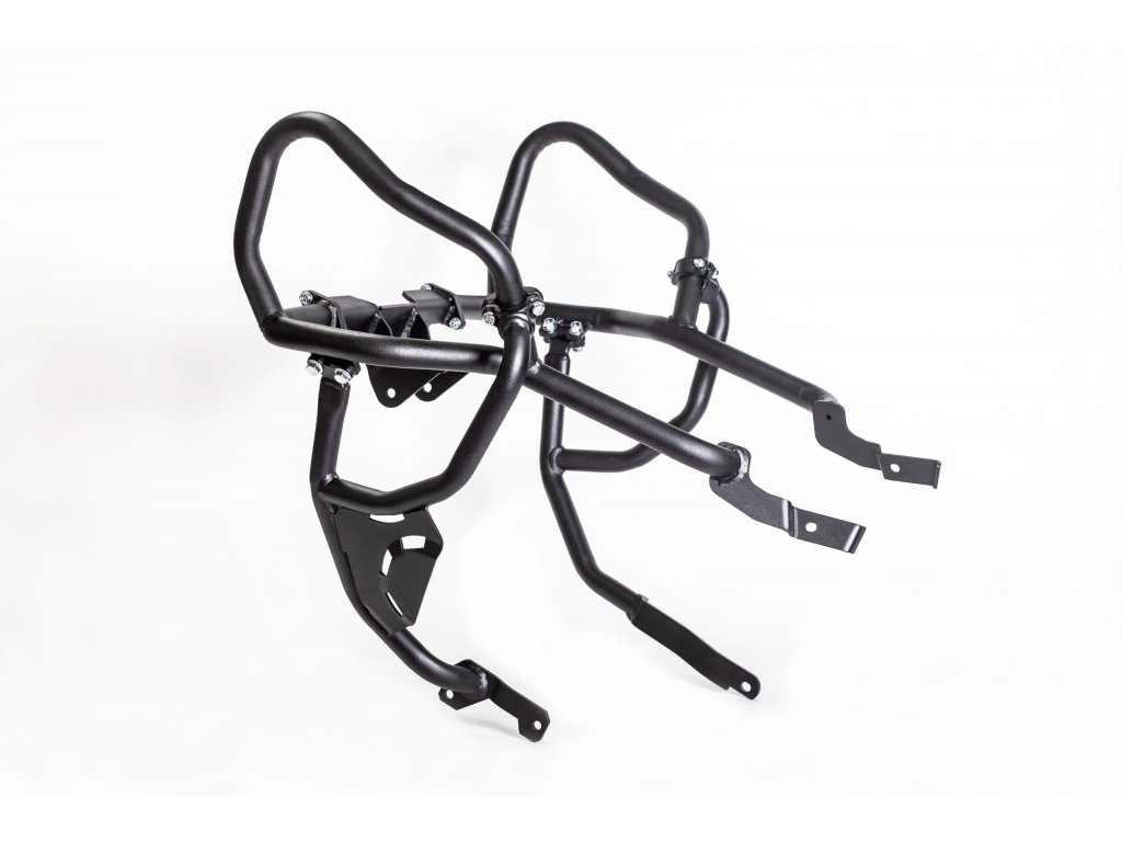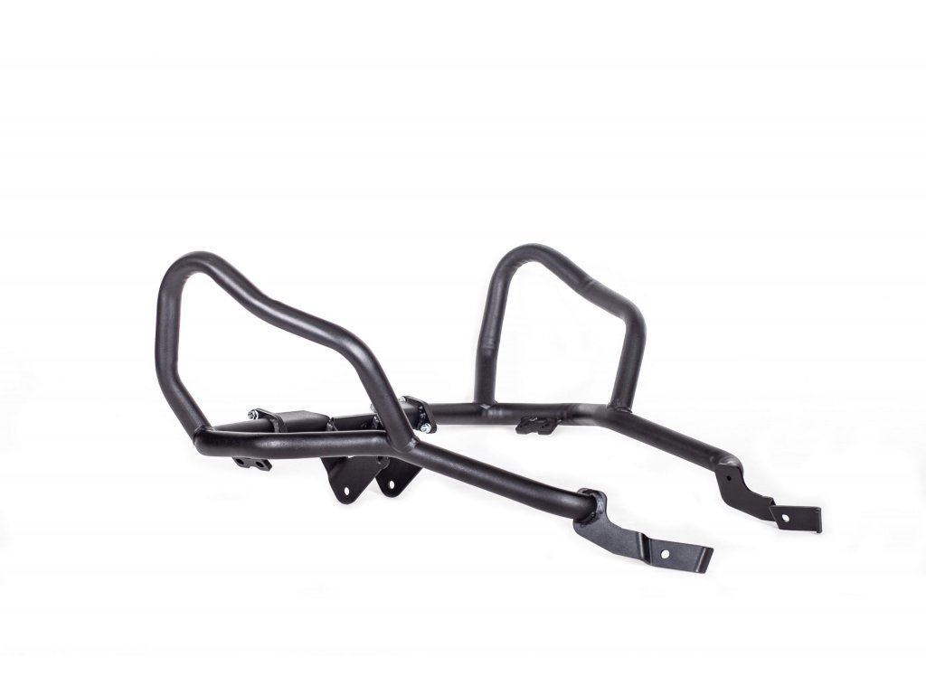 - Wytrzymałe elementy montażowe – elementy wycinane laserem z 4-milimetrowego materiału. W decydującym momencie absorbują większość energii uderzenia chroniąc w ten sposób przed uderzeniem znacznie droższą ramę samego motocykla.