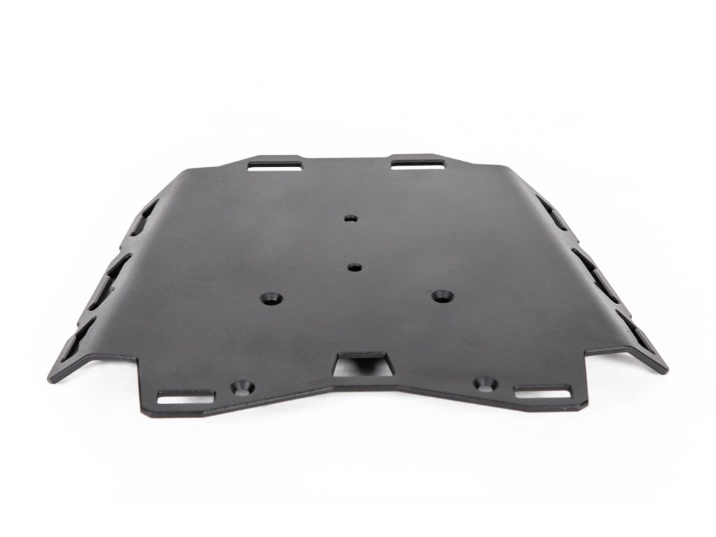 Aluminiowy element rozbudowujący stelaż bagażowy, zaprojektowany z myślą o łatwym przymocowaniu sakwy tekstylnej, kanistra systemu RotoPax lub tylko kamerki.