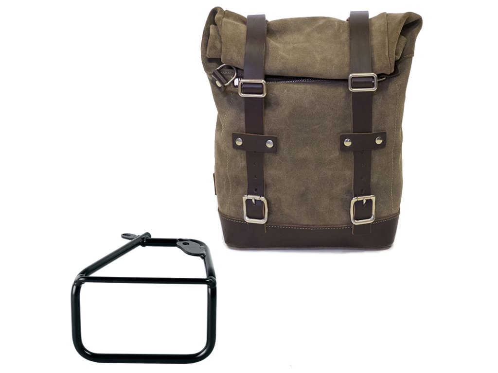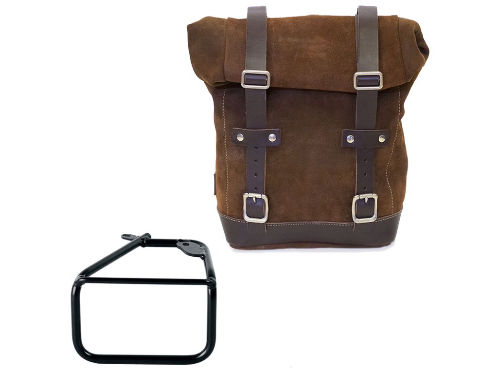 Boczna sakwa wykonana ręcznie we Włoszech z najwyższej jakości wytrzymałej dwoiny, woskowanej w celu nadania jej wodoodporności. Prosty i czysty design z pięknymi detalami w skórzanym wykończeniu o grubości 3 mm. Mocuje się łatwo dzięki systemowi szybkiego zwalniania. Za pomocą dołączonego klucza można zablokować system szybkiego zwalniania. Jest wystarczająco duży, aby bez problemu zmieścić 15-calowy laptop.