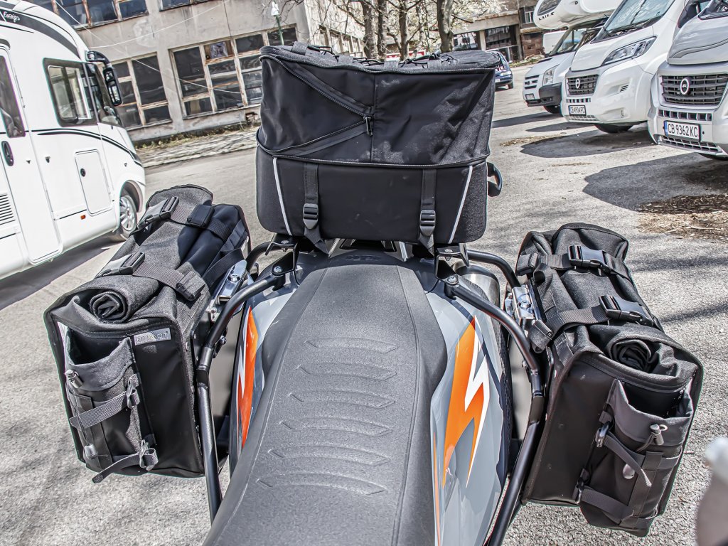 Do tych stelazi potrzebne są te same sakwy BUMOT Extremada bez zagięć wokół wydechu.