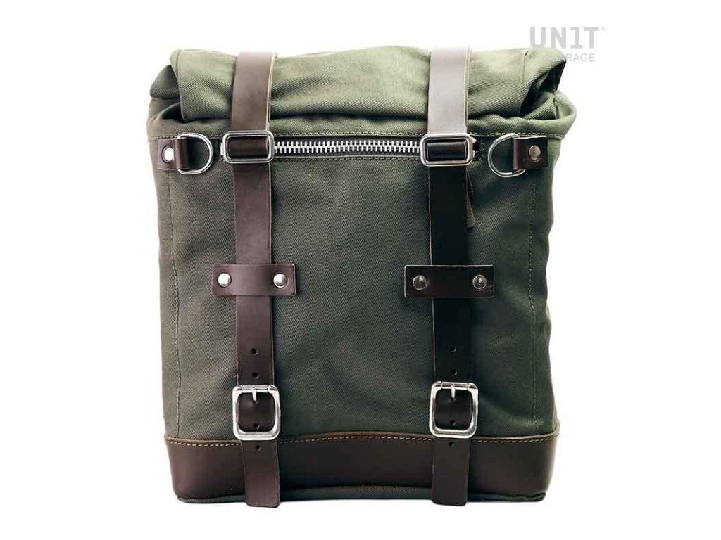 Scram boczna torba, rozciągliwa od 22 do 30 litrów, ręcznie wykonana we Włoszech z wytrzymałej, wodoodpornej bawełny najwyższej jakości.