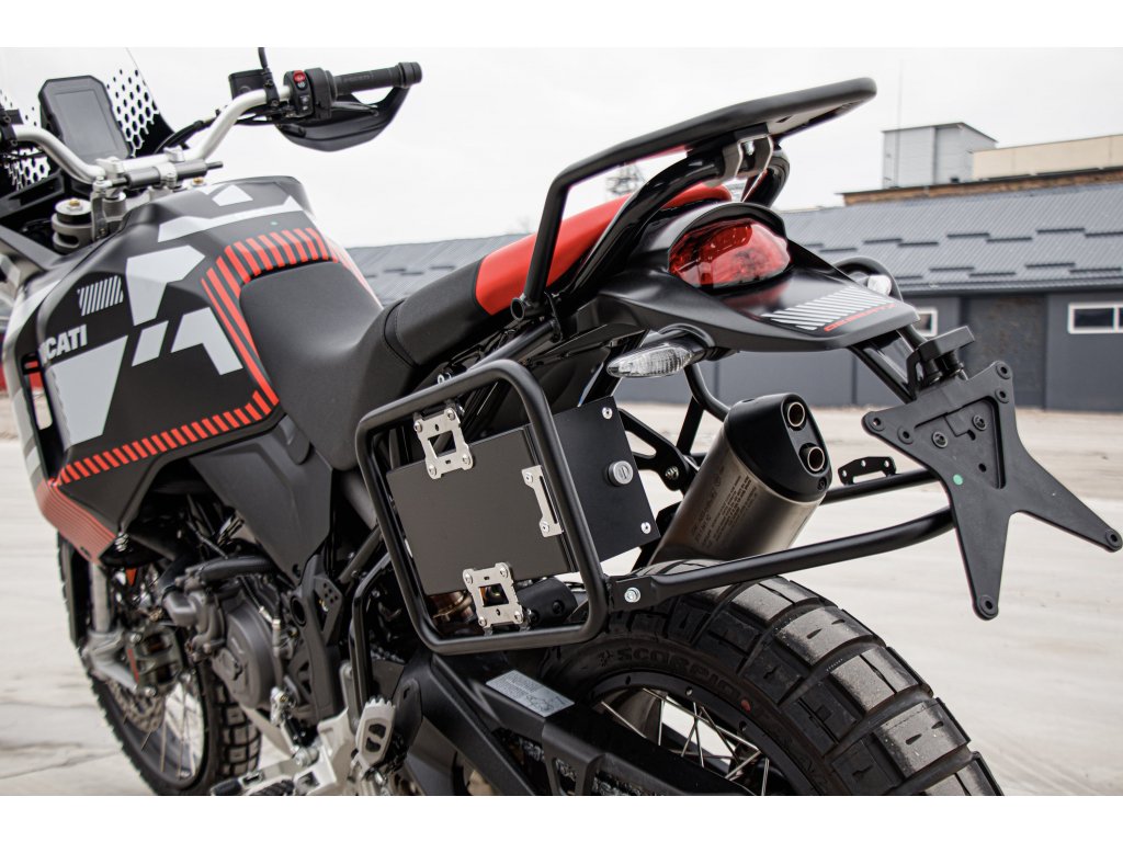 Do montażu na ramach kufrów Defender lub sakw Extremada BUMOT. Montaż na równym kufrze w kierunku motocykla, po przeciwnej stronie do rury wydechowej. Komplet z zamkiem.