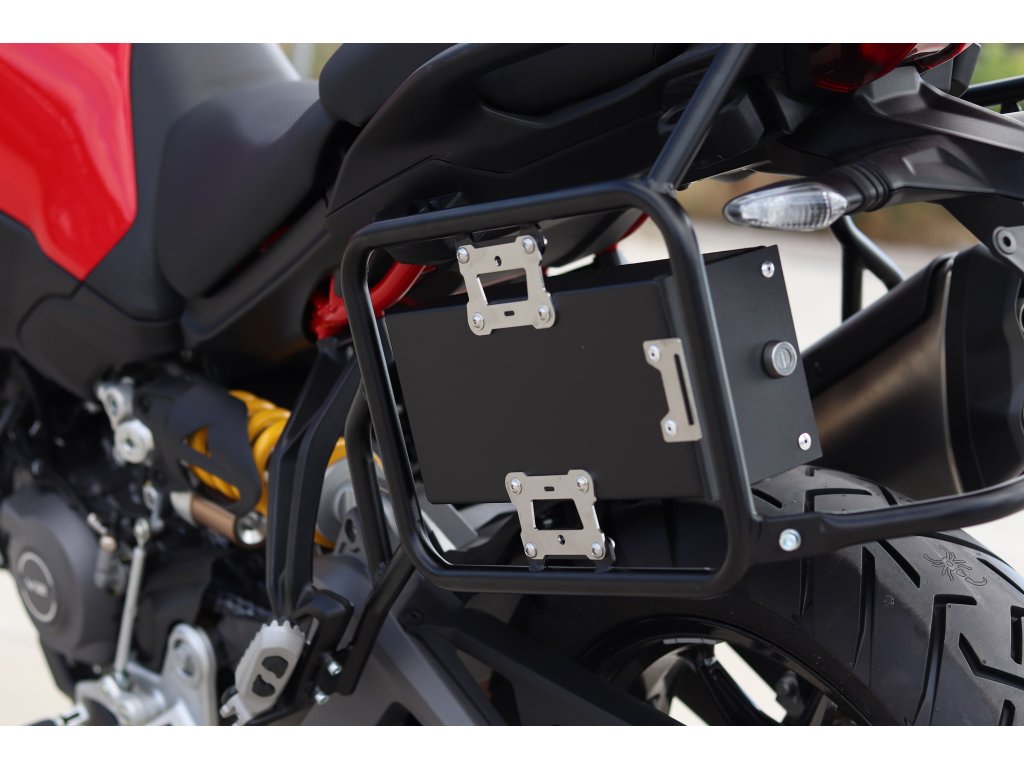 Do montażu na ramach kufrów Defender lub sakw Extremada BUMOT. Montaż na równym kufrze w kierunku motocykla, po przeciwnej stronie do rury wydechowej. Komplet z zamkiem.