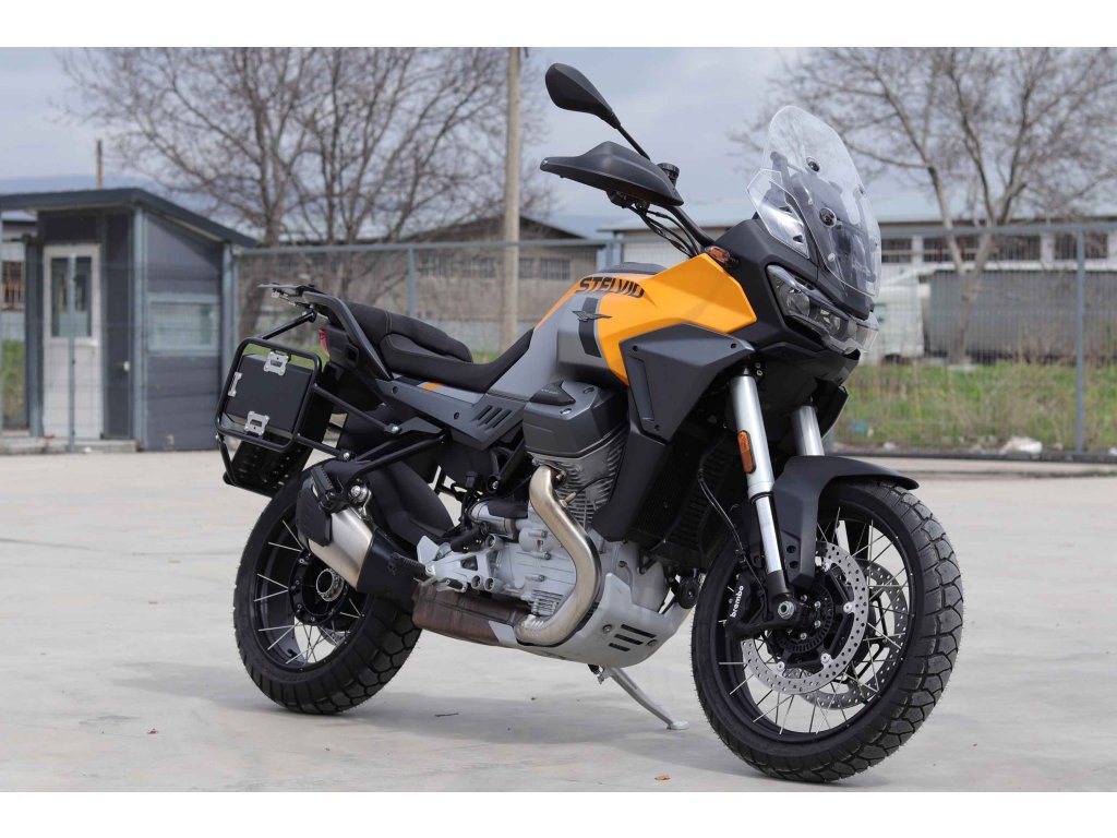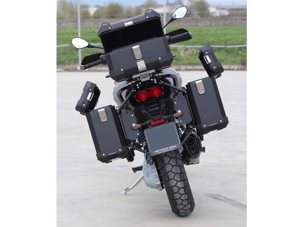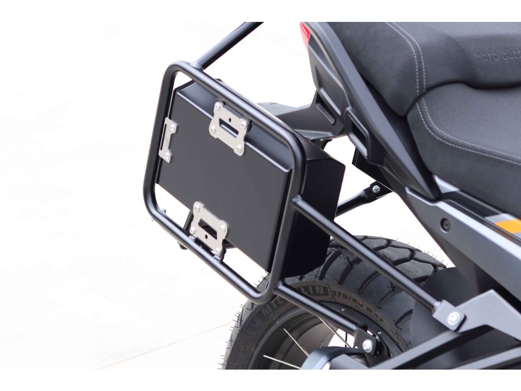 Na motocyklu Moto Guzzi Stelvio 2024+ można zamontować 2 skrzynki narzędziowe.