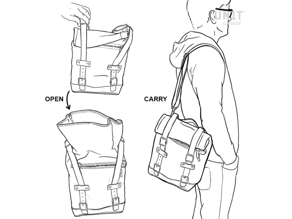 Torba Scram UNIT Garage to rozkładana torba boczna o pojemności od 22 do 30 litrów, ręcznie wykonana we Włoszech z najwyższej jakości wodoodpornej bawełny.