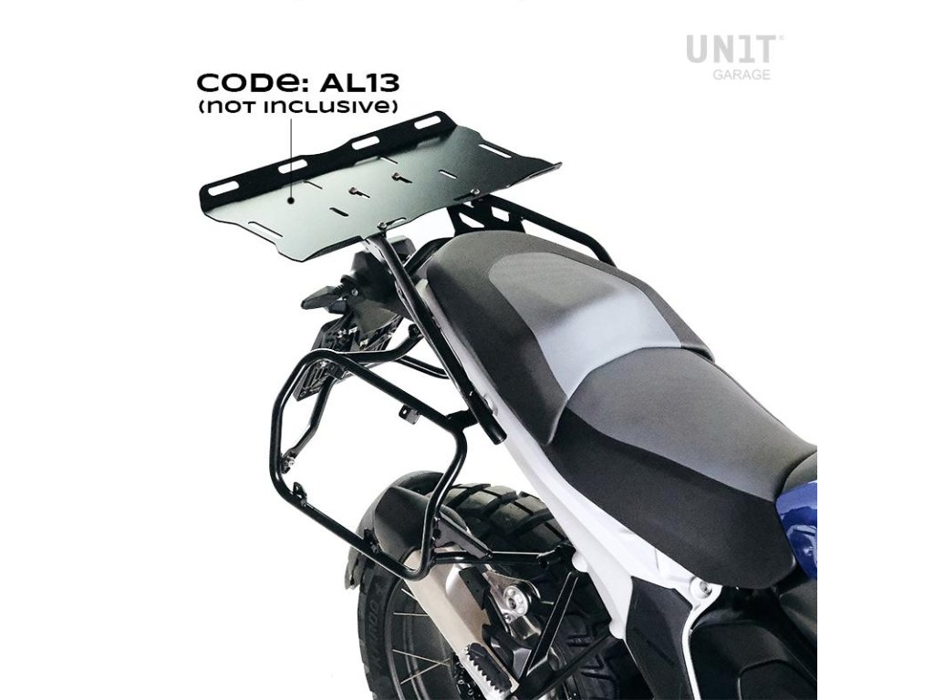 Uzupełnia tylną część i jest wyposażony w wygodne uchwyty dla pasażera. Wytrzymały i praktyczny, może pomieścić zarówno kod płyty: U108, jak i płytę AL3 do aluminiowego top case'a za pomocą 4 dołączonych mocowań. Doskonale nadaje się również do zwiększenia powierzchni ładunkowej dla miękkich toreb poprzez zamontowanie płyty Code: AL13 W tej wersji jest proponowany z wykończeniem proszkowym epoksydowym o wysokiej odporności w kolorze czarnym matowym.