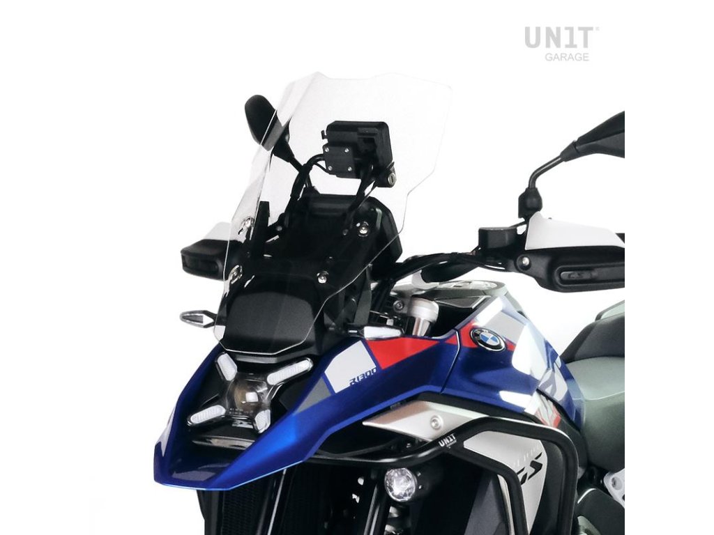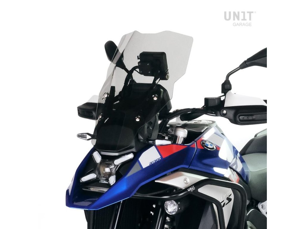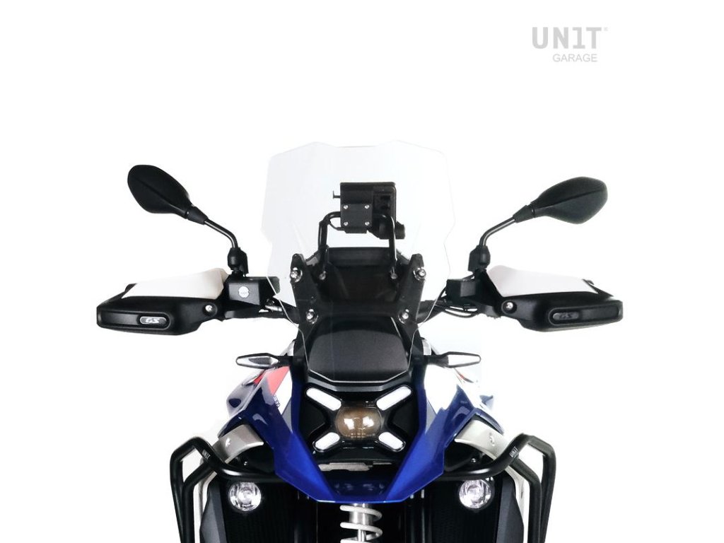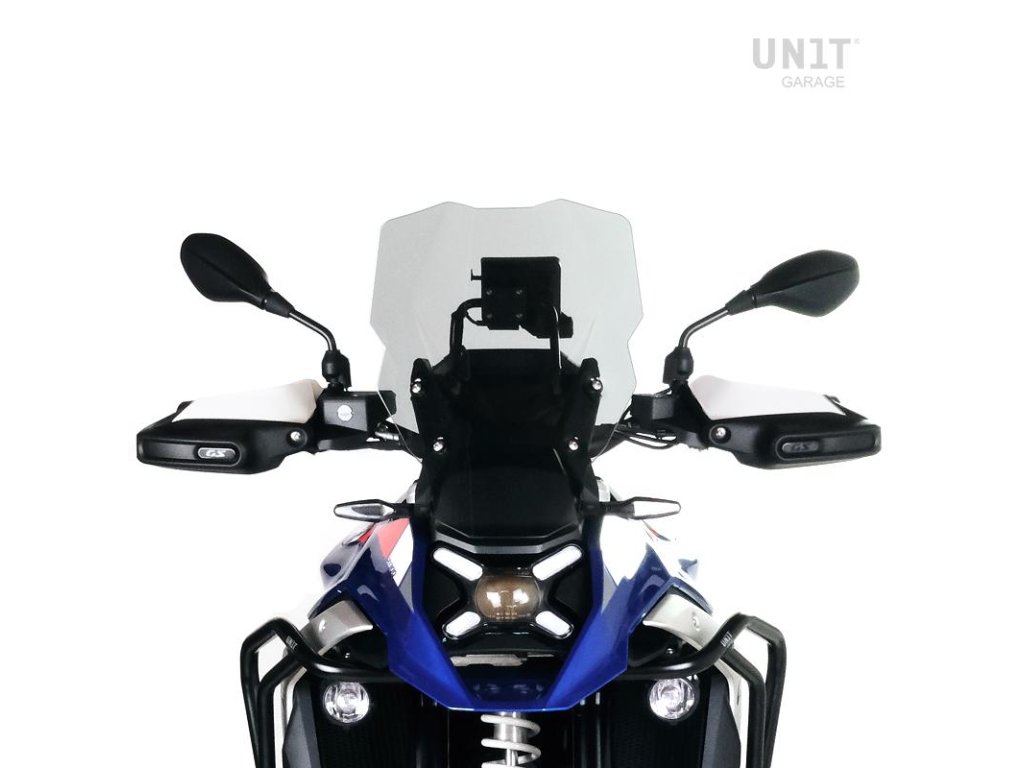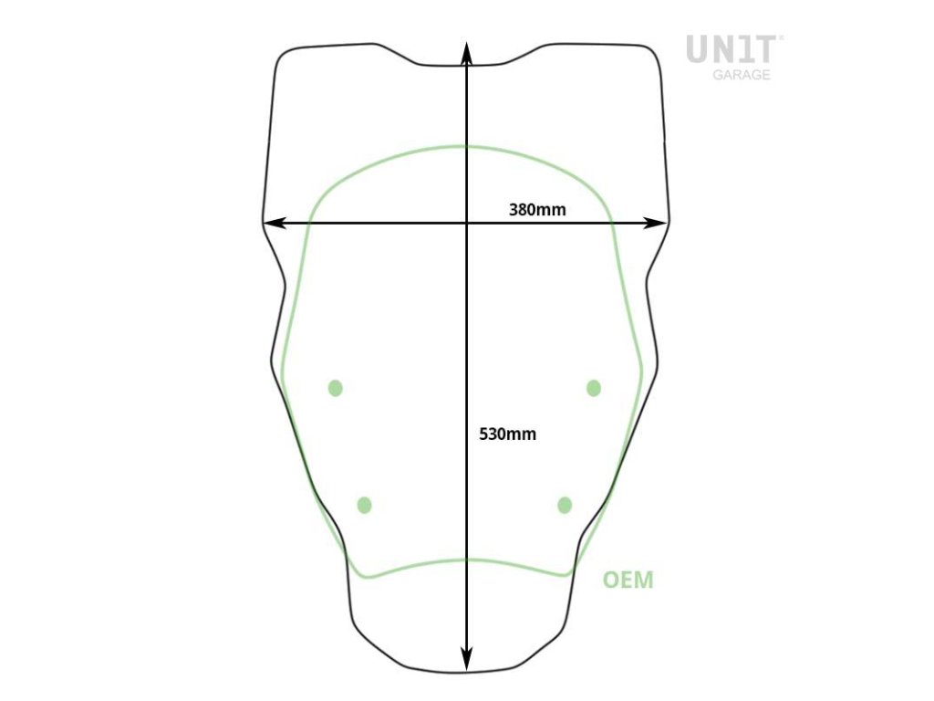 Szyba przednia jest absolutnie osobistym dodatkiem i opracowaliśmy ją w różnych kształtach, rozmiarach i przezroczystościach, z których każda jest odpowiednia dla różnych wzrostów i oczekiwań. Szyba XL (całkowite wymiary i różnicę w stosunku do oryginalnej można znaleźć na zdjęciach), reguluje się tak jak oryginalna w dwóch pozycjach i zapewnia optymalną ochronę dla każdego rodzaju wzrostu, eliminując irytujące turbulencje, Twój GS stanie się jeszcze bardziej ergonomiczny!