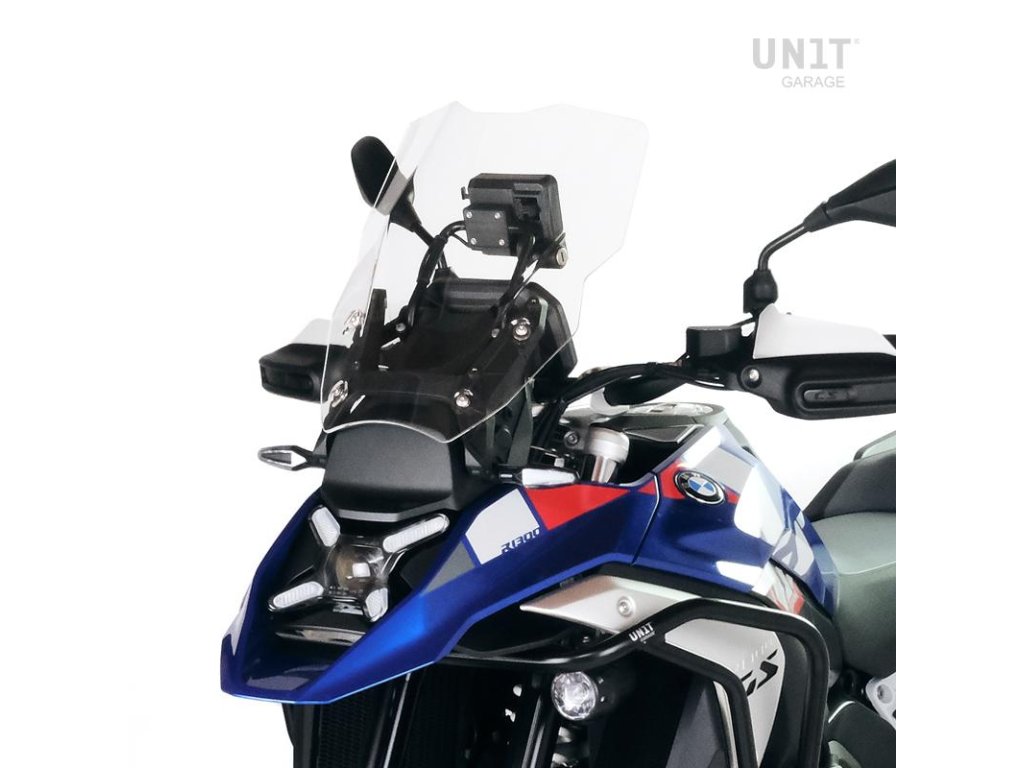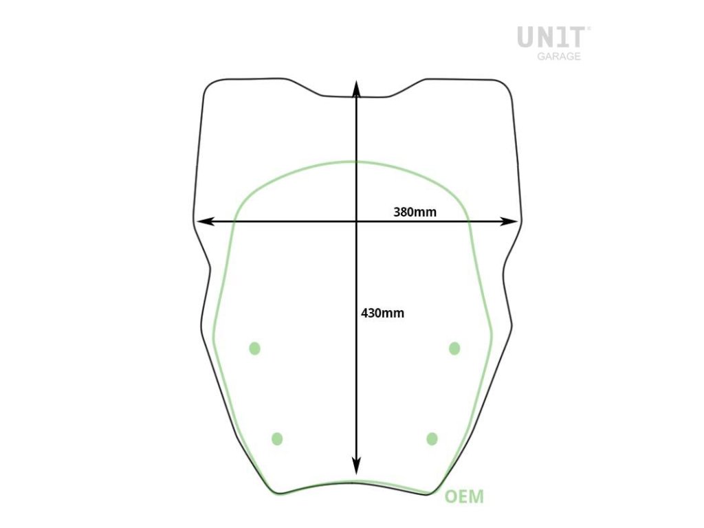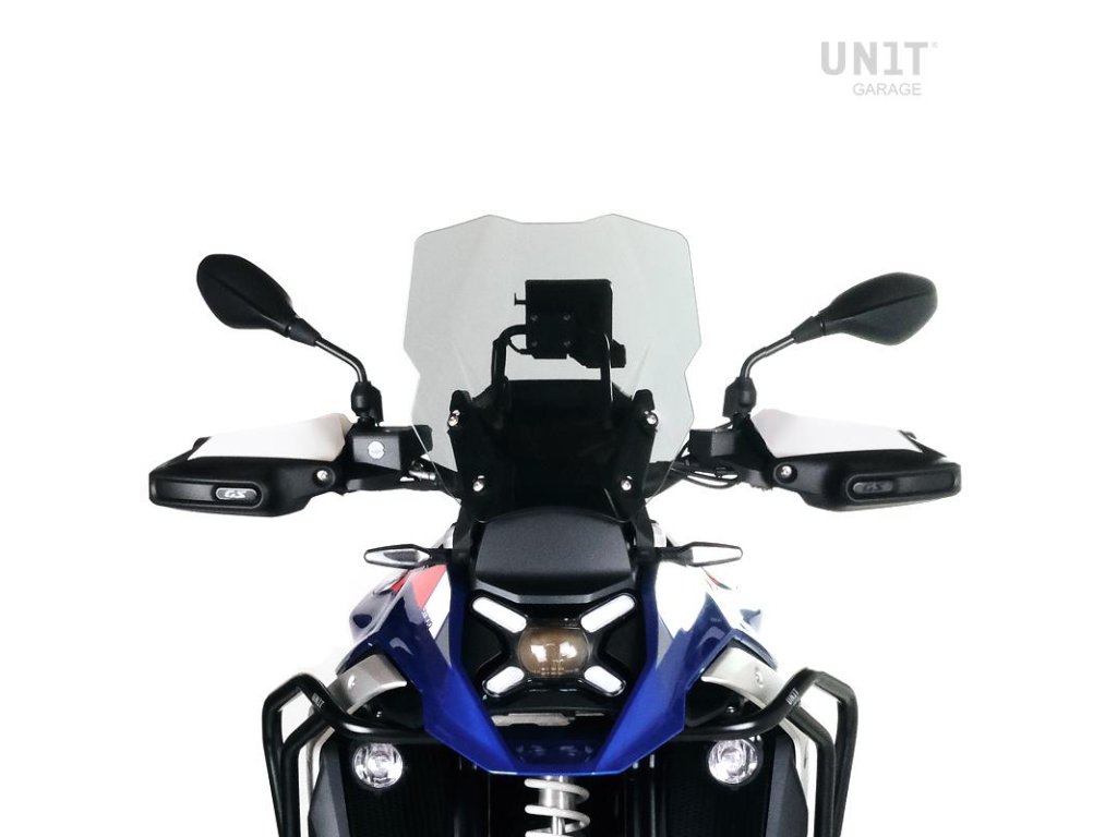 Szyba przednia jest absolutnie osobistym dodatkiem i opracowaliśmy ją w różnych kształtach, rozmiarach i przezroczystościach, z których każda jest odpowiednia dla różnych wzrostów i oczekiwań. Szyba XL (całkowite wymiary i różnicę w stosunku do oryginalnej można znaleźć na zdjęciach), reguluje się tak jak oryginalna w dwóch pozycjach i zapewnia optymalną ochronę dla każdego rodzaju wzrostu, eliminując irytujące turbulencje, Twój GS stanie się jeszcze bardziej ergonomiczny!